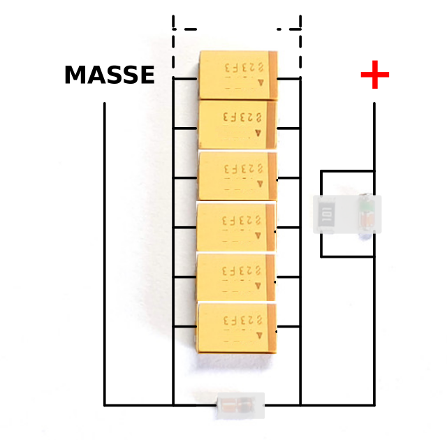 (ATTENTION au sens lors du montage, ces condensateurs sont polarisés)